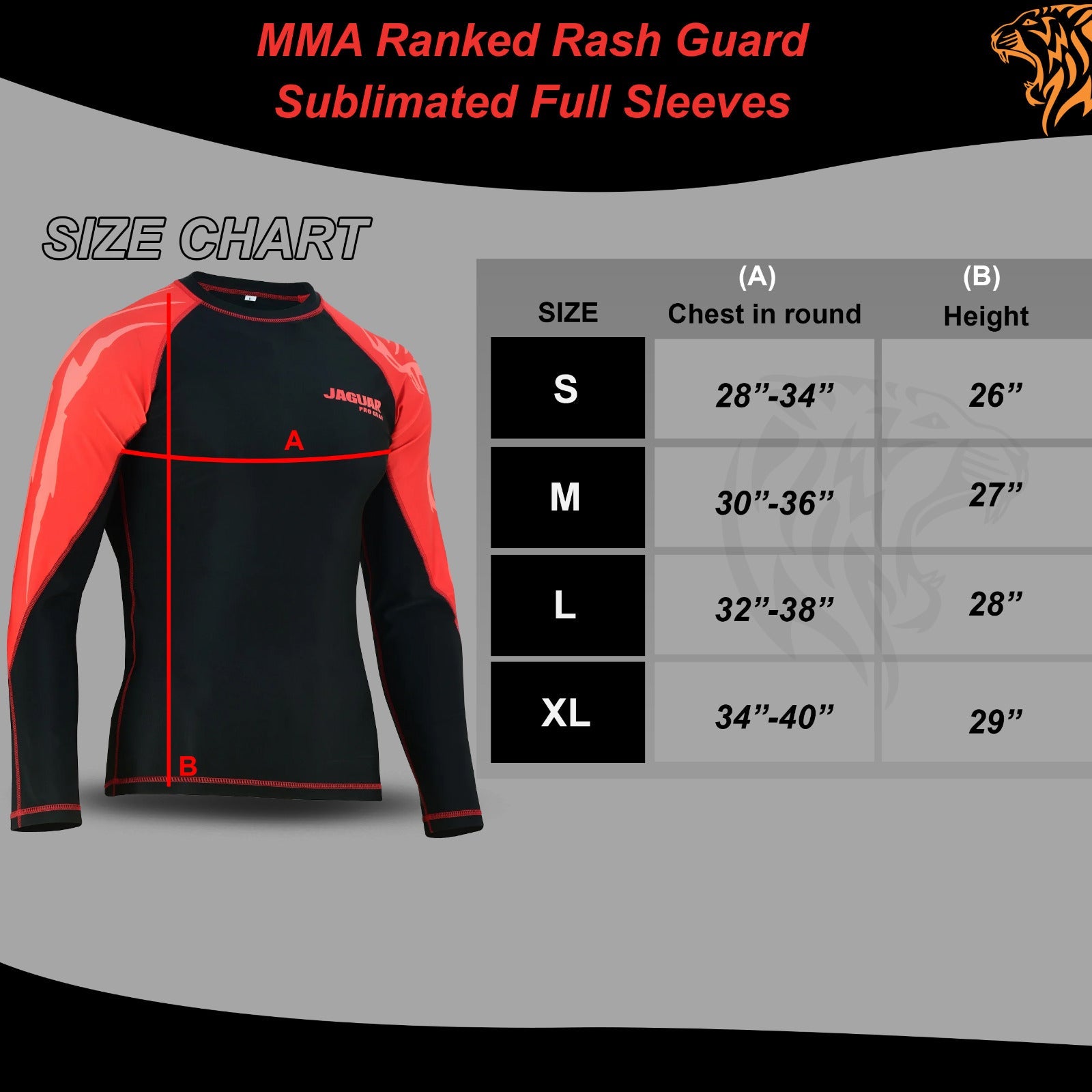 Jaguar Pro Gear - Elite MMA Ranked Rash Guard Sublimated Full Sleeves Inner Layer For Mixed Martial Arts