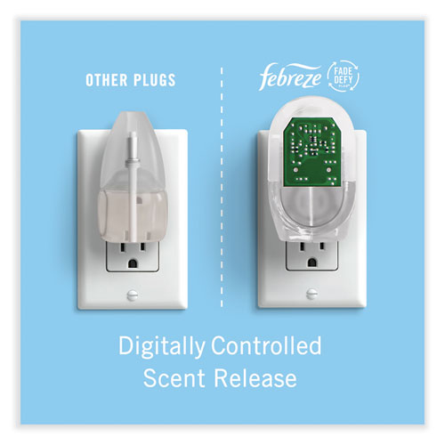 Have you experienced your plug air freshener scent fading? Good news! Febreze Fade Defy PLUG Air Freshener stays true to its name, delivering a first day fresh that lasts a full 50 days (on low setting). Ready to hit refresh and be an A+ odor fighter? Just refill the Febreze Fade Defy PLUG and plug it into any outlet (they'll even rotate if your outlet is upside down) in any high-traffic area of your homethe kitchen, bathroom, or anywhere else odors like to linger. When it's time for a refill, the automatic air freshener will let you know with its handy low-level indicator light.